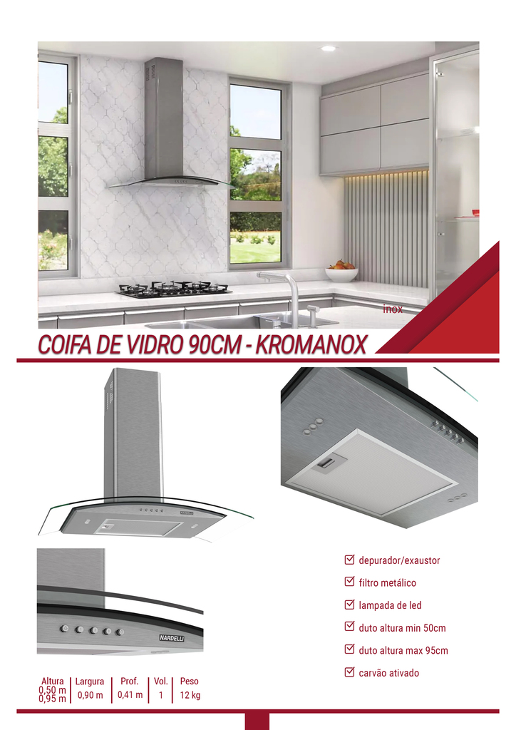 COIFA NARDELLI VIDRO 90 CM - KROMANOX