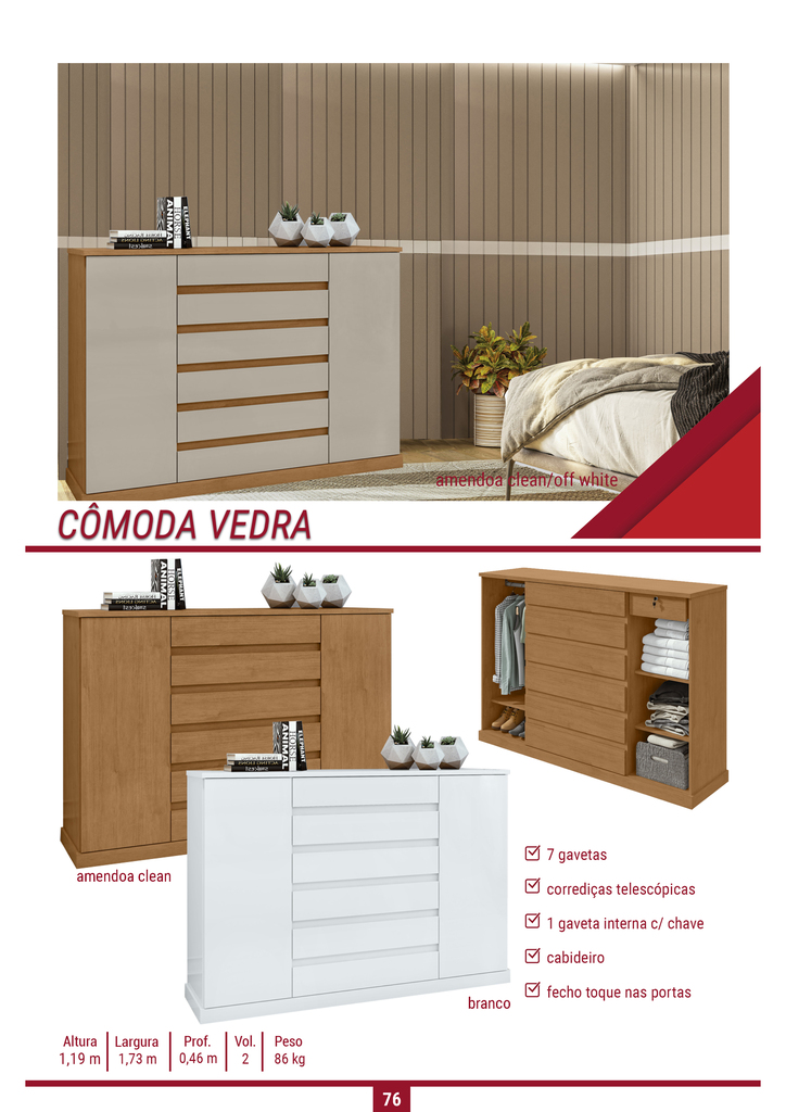Altura: 1190mm | Largura: 1730mm | Profundidade: 460mm